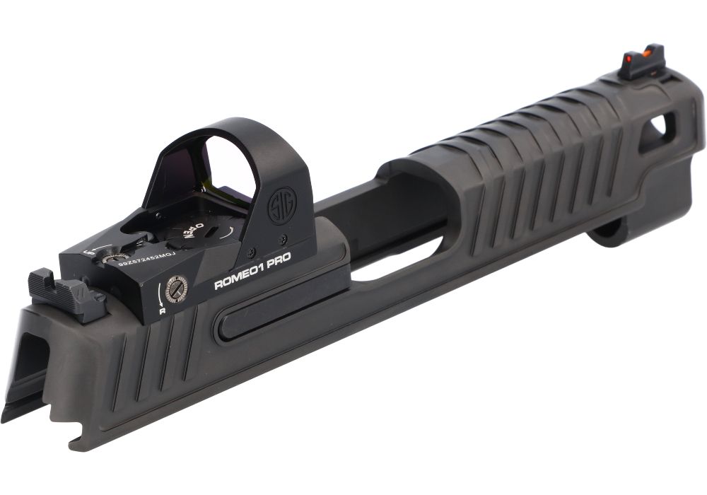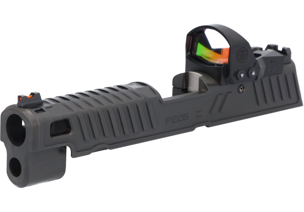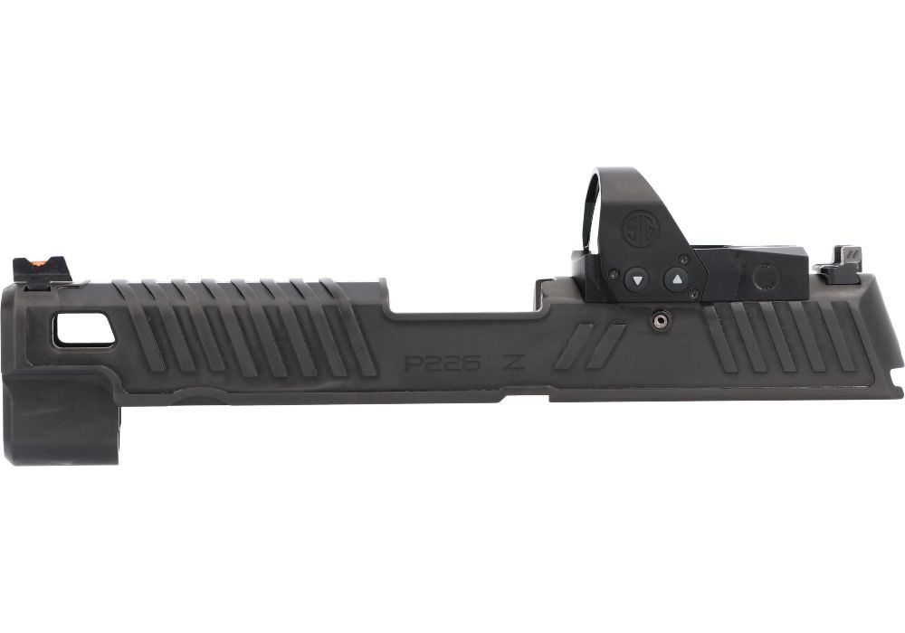 P226 ZEV 9MM 4.4″ SLIDE ASSEMBLY, ROMEO1PRO W/ ZEV TECH FIBER OPTIC SIGHTS, BLACK
