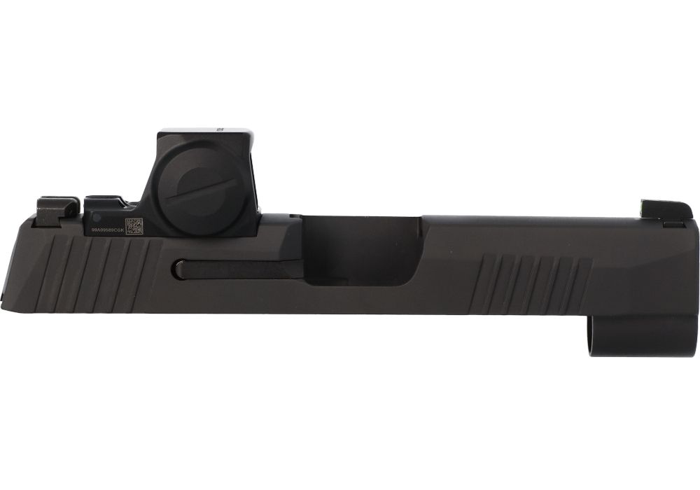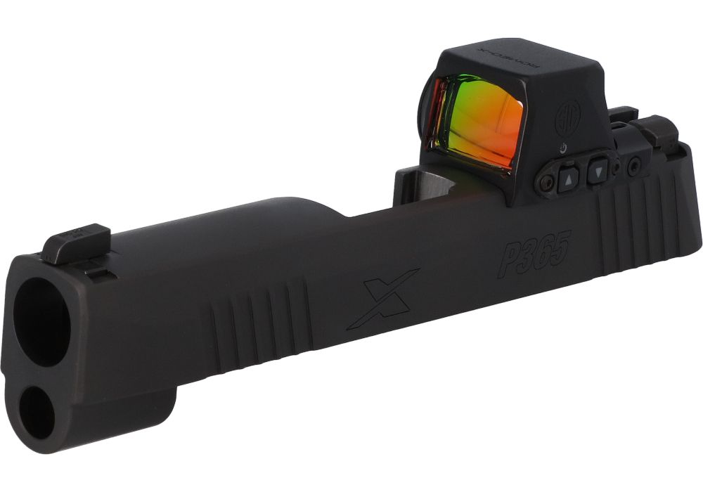 Enjoy using a slide-mounted reflex sight without needing suppressor height iron sights. The factory-installed ROMEO-X COMPACT optic sits incredibly low to the slide so you can enjoy co-witness with the included standard height iron sights, giving you a consistent, familiar sight picture. Factory replacement 3.7″ 9MM slide for the P365XL. Compatible with all P365 9mm models and configurations with the following accompanying items: P365/P365XL 3.7″ barrel, and recoil assembly.